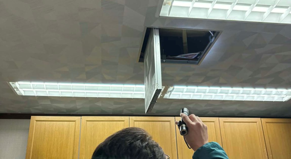 現場に急行し、まずは天井点検口から内部の状態を確認。
