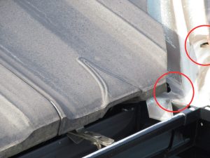 屋根の「谷板金」の破損: 屋根の折れ曲がった部分(谷)にある板金に劣化・破損が見られました。ここは雨水が集中する場所であり、小さな傷が致命的な雨漏りにつながります。