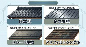 一般的に普及している屋根材には、主に以下の4つのタイプがあります。